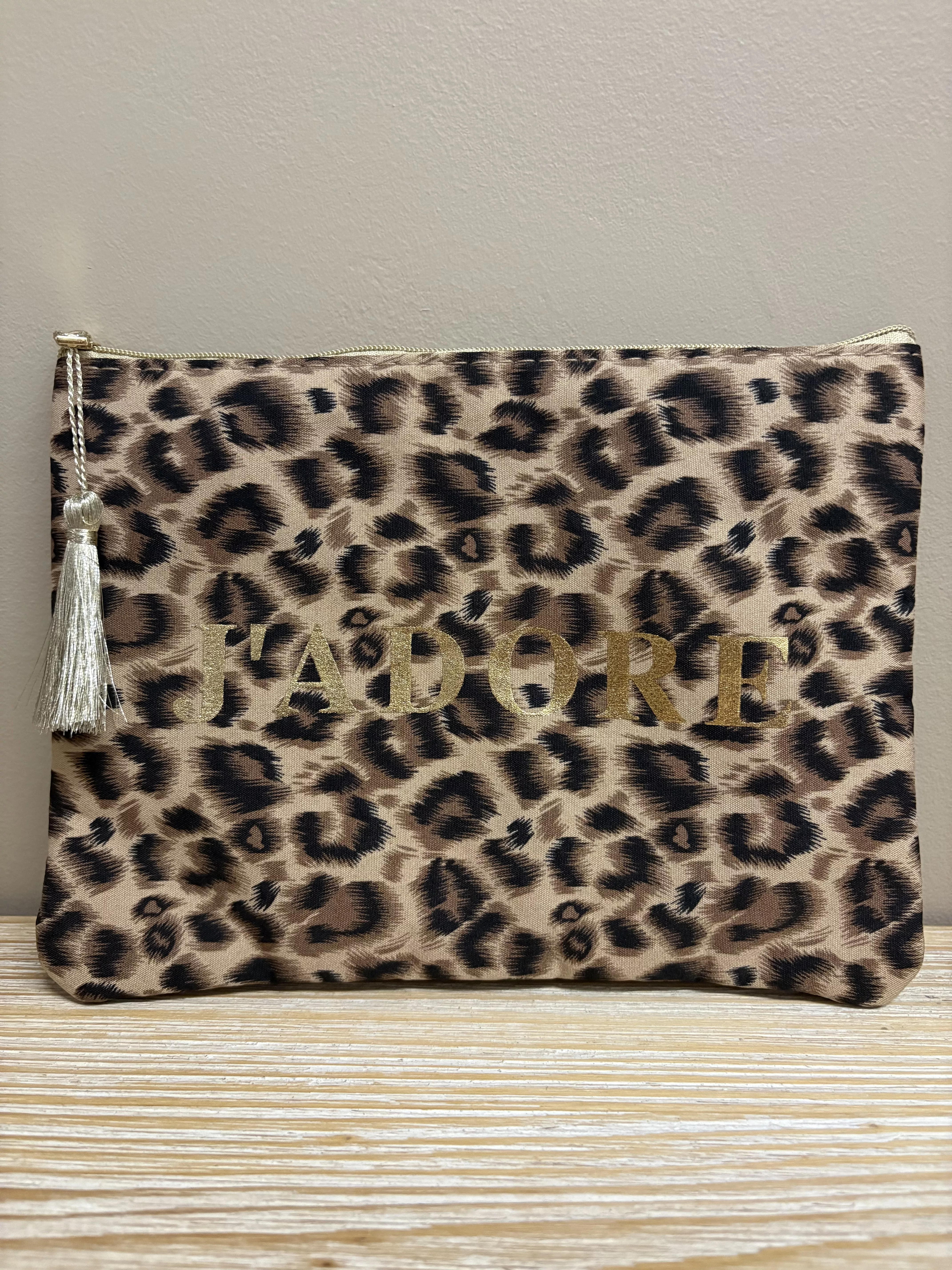 Jolie pochette en tissu très Tendance inscription J’adore en doré