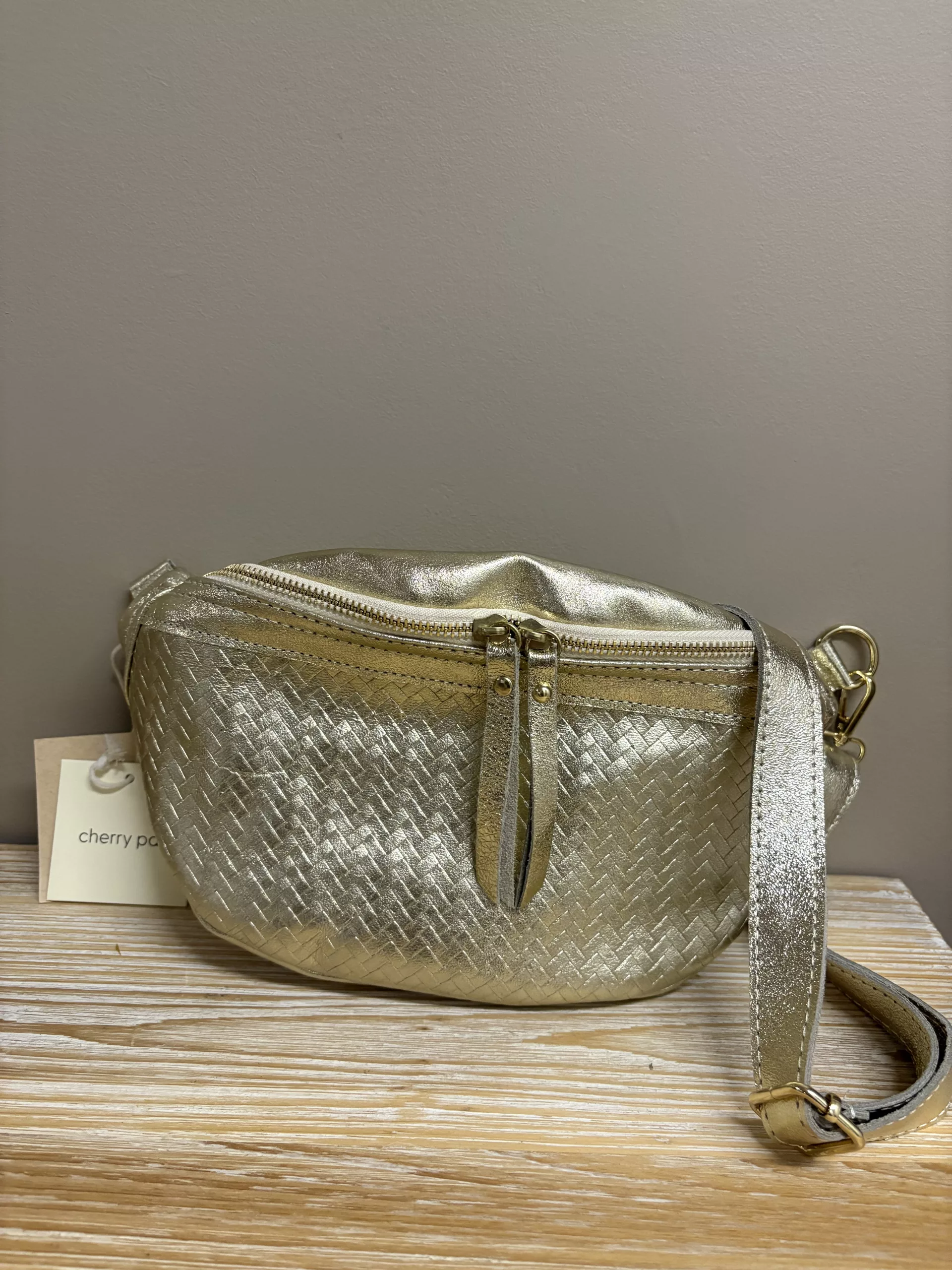 Sac Banane en croute de cuir de vachette métallisé avec motif tressé